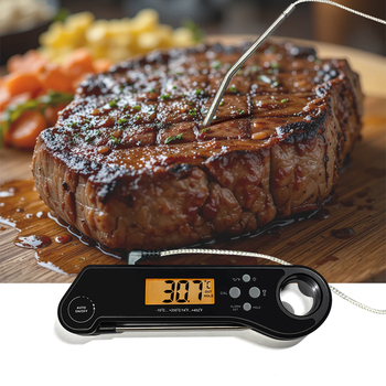 3-in-1 Foldable Stainless Steel 304 Digital Thermometer for Kitchen Cooking & Household Use with LCD & Plastic