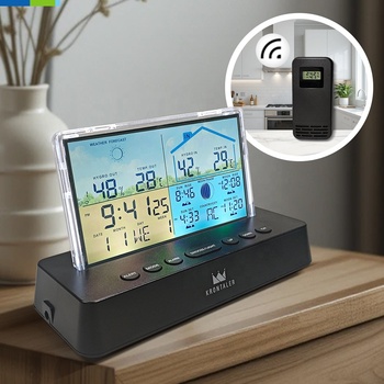เครื่องแสดงสภาพอากาศแบบไร้สายอัจฉริยะพร้อมนาฬิกา RC นาฬิกา LCD หน้าจอสีมัลติฟังก์ชันและนาฬิกาแสดงผลหลายภาษา